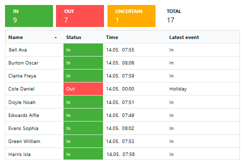 You can see with a single view whether your employees are present and what they have done most recently.