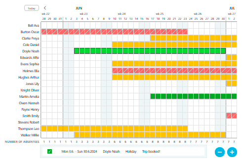 Your employees can suggest holidays and other absences. You can view and approve them in the same view.