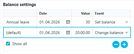 Now you can also choose to enter a balance change. For example, you can add hours to a flexitime balance or reduce them when the balance is paid out in money.