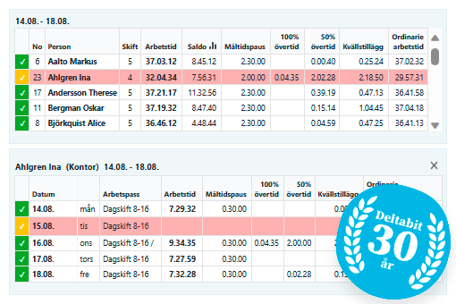 Passerkontrollen och arbetstidsuppföljningen fungerar sömlöst tillsammans och gör personalhantering enkelt.