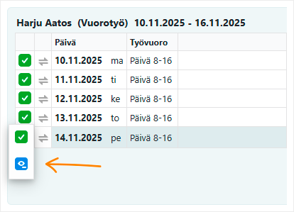 Jos yrityksessäsi suunnitellaan paljon vuoroja yksittäisille päiville, voit lisätä ne suunniteltavaksi suoraan vuorosuunnittelunäkymässä päivämäärän otsikon vieressä olevaa ”+”-nappia painamalla.