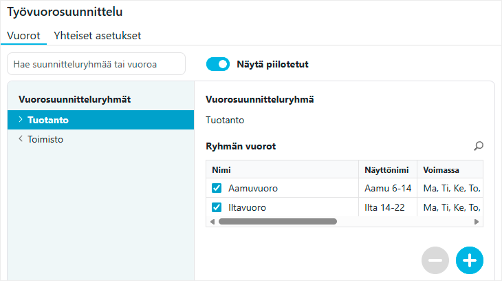 - Hallitse työvuorosuunnittelun vuoroasetuksia selaimessa.