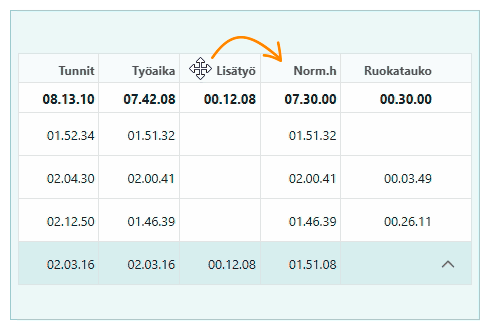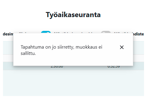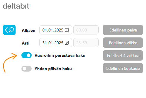 Vuoroihin perustuva haku työajanseurannassa sekä muuta