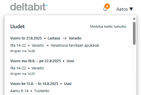Vastaanota ilmoituksia suunnitelluista työvuoroista ja tee aiempaa nopeammin korjauksia suoraan palkkalajeihin.