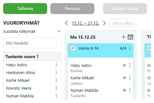 Hyväksy tunnit kahdessa vaiheessa ja saa siitä ilmoituksia. Lisää vuoroja suoraan vuorosuunnittelunäkymässä.