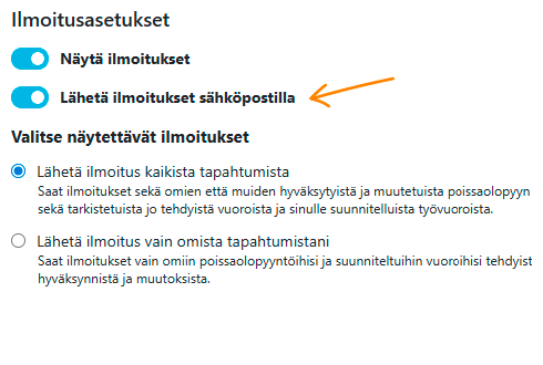 Ilmoitukset työvuoroista